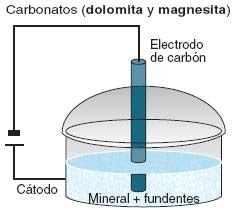 2.-Por reducción (dolomita y magnesita): por reducción de MgO en contenedores de cromo-níquel, a baja presión y 1160ºC. Se añade fundente y en el horno eléctrico se elimina el oxígeno.